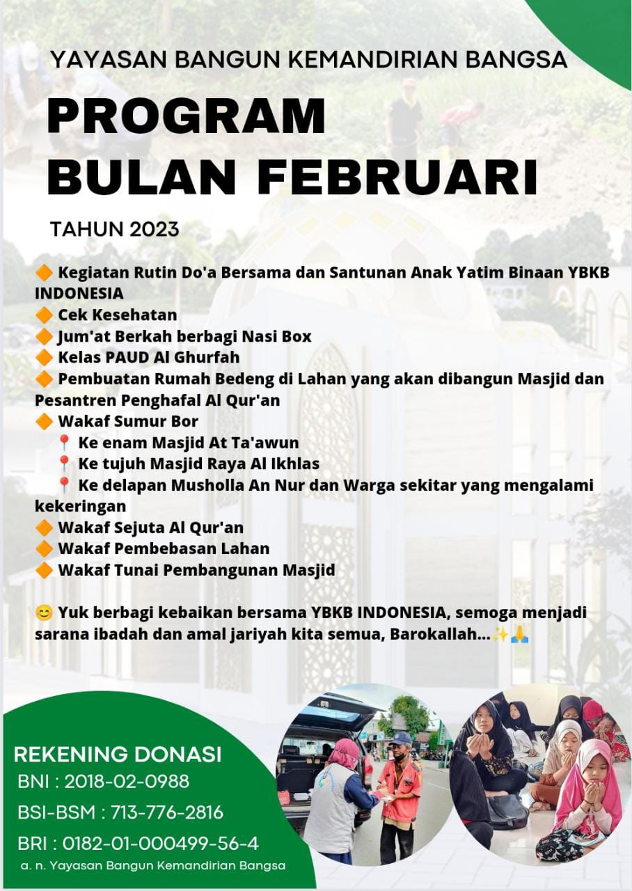 YBKB Indonesia sudah mendapatkan lahan yang rencananya akan dibangun Masjid dan Pesantren Tahfidz Yatim seluas 5.706 m² Lokasi lahan berada di Jln. Kusuma Karti, Ds. Bulu, Kec. Polokarto, Kab. Sukoharjo Kebutuhan Rp. 37.721.667/bulan